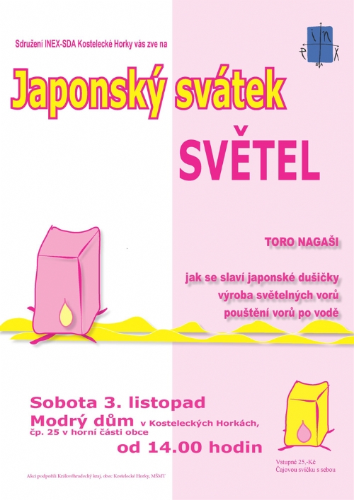 V rámci sobotní dílny si budete moci vyrobit vlastní světelný vor, dozvědět se něco bližšího o současném Japonsku a nakonec si světelný vor pustit po vodě na obecním rybníku.