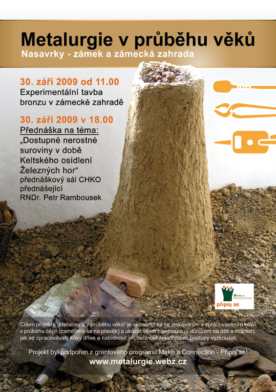 Cílem experimentu je vyrobit bronz pravěkou technologií , kterou používali naši předci - Keltové. Akce je určena všem zájemcům. Po skončení experimentu proběhne také odborná přednáška (od 18:00 hodin). Více informací také na www.metalurgie.webz.cz a www.boii.cz