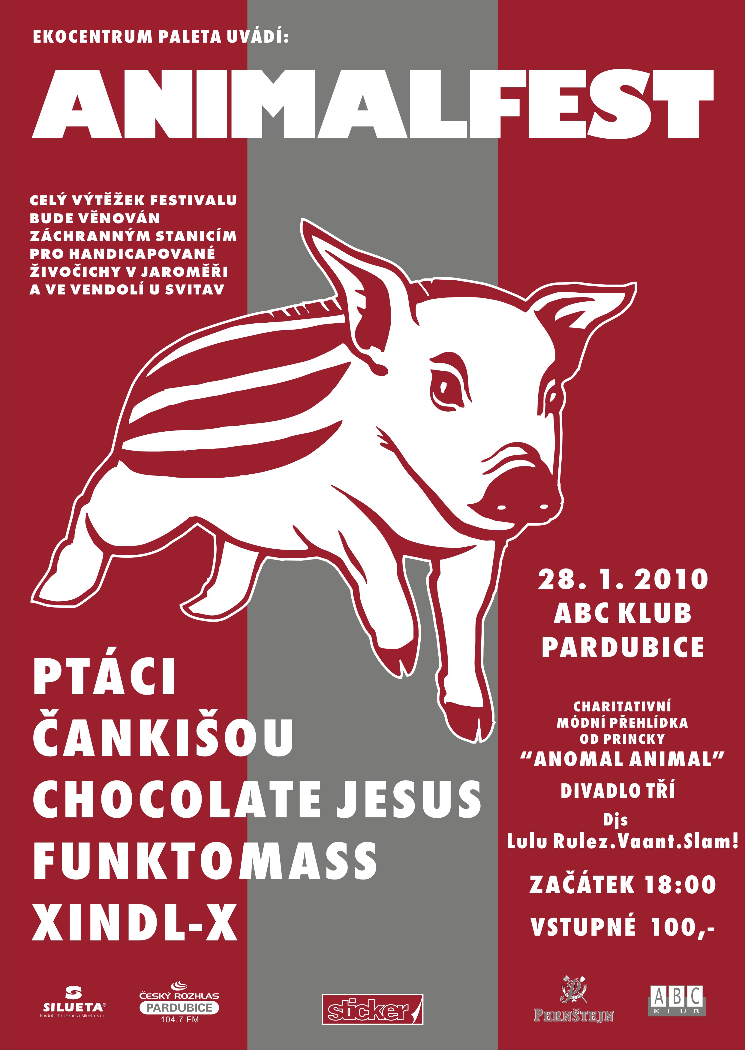 Animalfest 2010 podpoří - Xindl X, Čankišou, Chocolate Jesus, Funktomass a Ptáci. Na malém sále budou hrát DJs - Lulu Rulez, Vaant a Slam! Bude se také konat tématická módní přehlídka a vystoupí Divadlo Tří. Výtěžek letos poputuje nejen do záchranné stanice ZO ČSOP v Jaroměři - www.jarojaromer.cz, ale i do stanice ve Vendolí u Svitav - http://zelene.vendoli.sweb.cz/