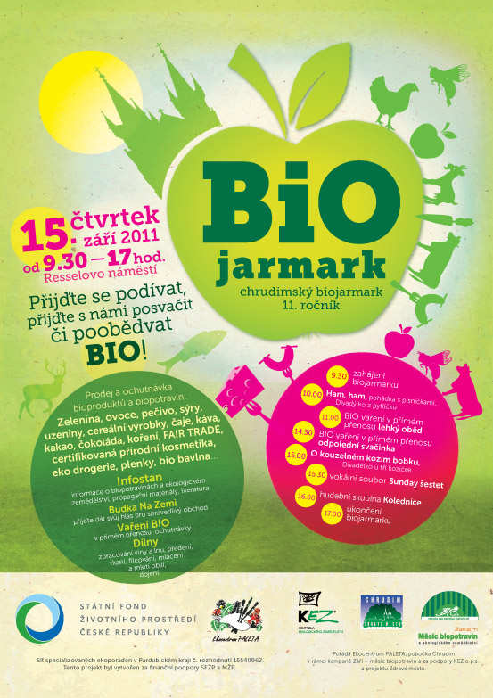 11. ročník tradiční akce zaměřené na představení a prodej potravin pěstovaných bez použití chemických hnojiv, postřiků a GMO. Kromě biopotravin zde můžete vidět a nakoupit i produkty Fair Trade, certifikovanou přírodní kosmetiku a další ekologicky příznivé zboží. Bohatý doprovodný program, divadlo, hudba, soutěže o ceny, vaření v přímém přenosu, dílny.