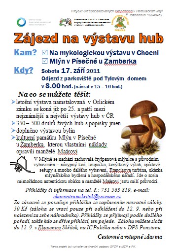 Zájezd na 25. mykologickou výstavu do Chocně a do Mlýna v Písečné u Žamberka. Více informací a jak se přihlásit najdete v příloze.