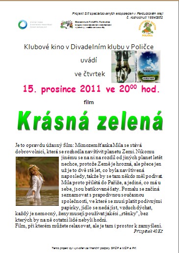 Promítání filmu Krásná zelená - úžasný film, relaxace, sci-fi, je i prostor k zamyšlení. Více v příloze.