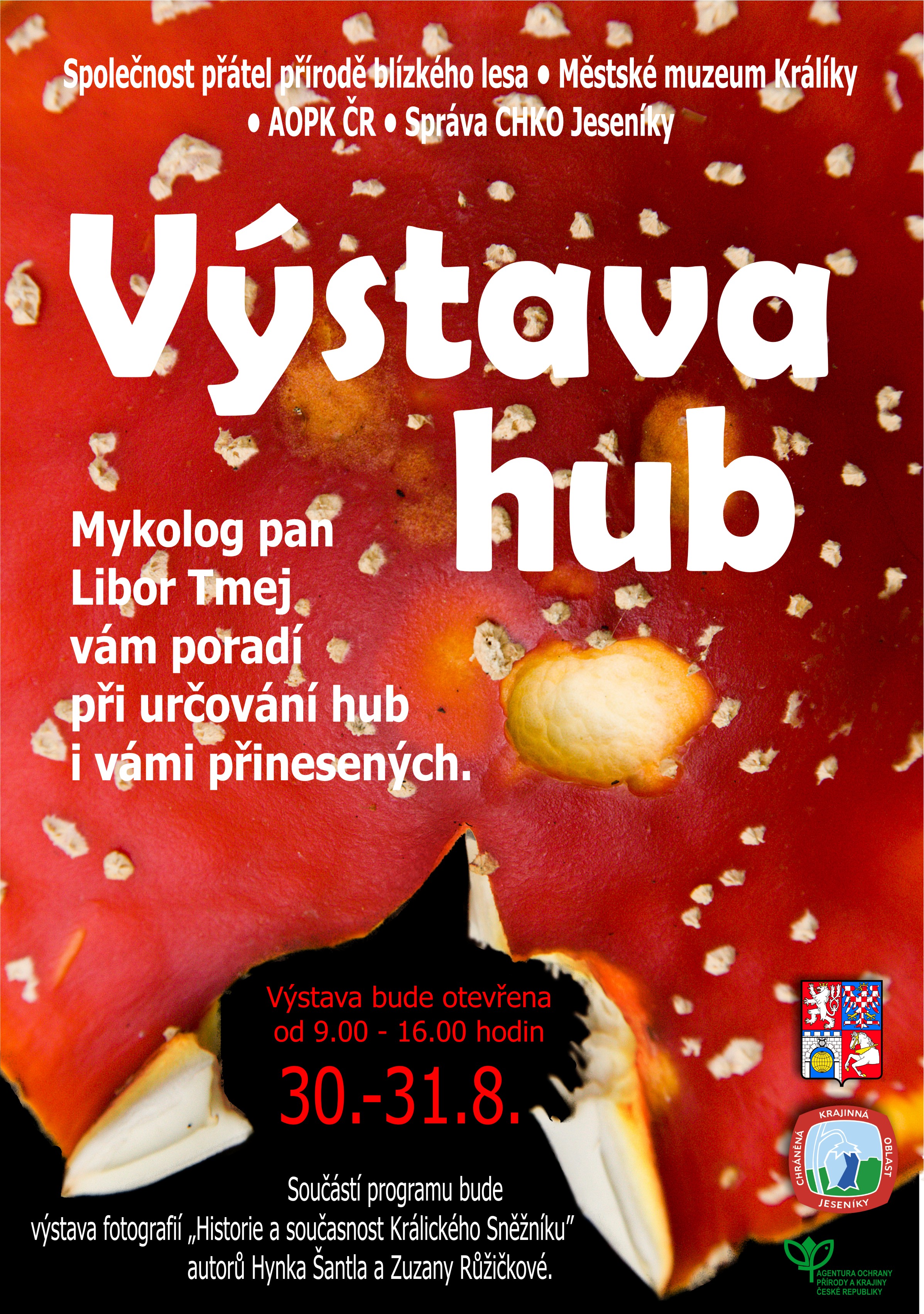ZO ČSOP Podorlicko Česká Třebová vyhlašuje fotografickou soutěž na témata 1.PŘÍRODA VE MĚSTĚA2. HOUBY VE MĚSTĚ Soutěž je vyhlášena ve třech věkových kategoriích: A autoři mladší 16ti let B autoři 16-20 let C autoři starší 20ti let Soutěží se ve dvou druhových kategoriích: 1/ černobílé fotografie 2/ barevné fotografie V každé druhové kategorii může jeden autor dodat maximálně 3 snímky ke každému tématu. Celkem tedy maximálně 12 fotografií Označení snímků: název fotografie, celé jméno a příjmení autora, označení kategorií a tématu Formát fotografií: 15x20 a větší Uzávěrka soutěže : 30.10.2013 Ceny: flash disk, knihy, CD, stolní hry Doručení fotografií pořadateli: H. Grundové do Gymnázia v České Třebové nebo na adresu H. Grundová Jiráskova 896 Česká Třebová Vernisáž výstavy fotografií bude 17.11.2013 v Ekocentru Podorlicko v České Třebové¨