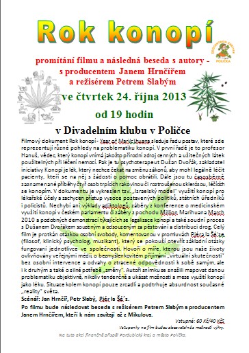 Rok konopí - promítání dokumentárního filmu s následnou besedou s autory. Více informací najdete v přiložené pozvánce.