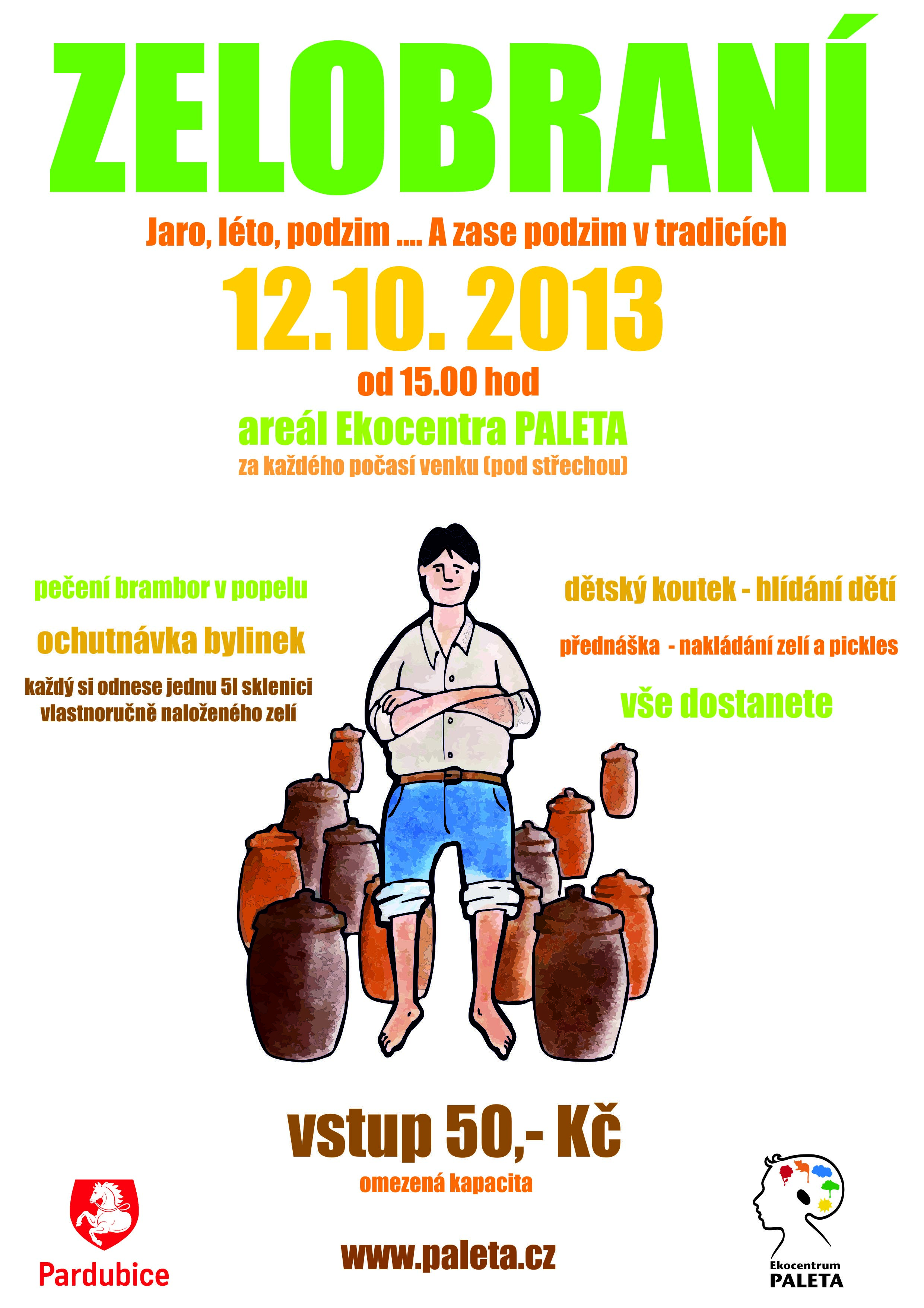 V rámci cyklu "Jaro, léto, podzim... A zase podzim v tradicích" se uskuteční Zelobraní. Veškerý potřebný materiál bude k dispozici, domů si odnesete velkou (cca 3,6 litru) zavařovací sklenici s vlastnoručně naloženým kysaným zelím. Doprovodný program - pečení brambor v ohni, ochutnávka bylinek, povídání o různých způsobech nakládání zelí a zeleniny (pickles), dětský koutek. Akce se koná za podpory statutárního města Pardubice. Vstupné 50 Kč