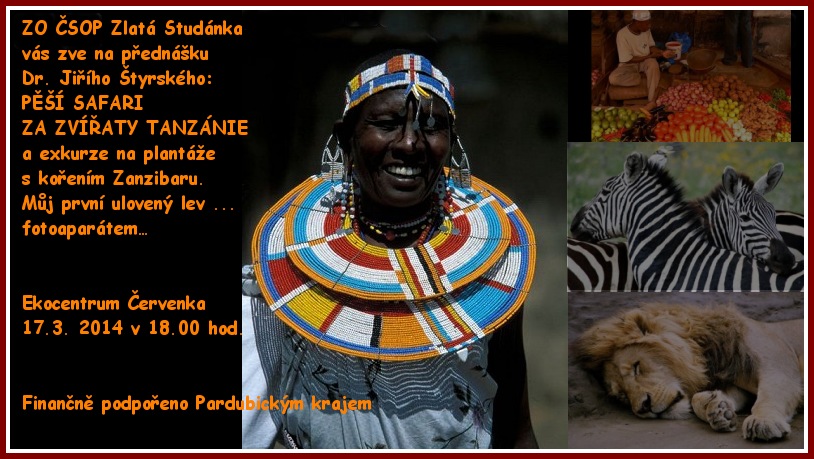 Dr. Jiří Štyrský Přednáška: Pěší safari za zvířaty Tanzánie a exkurze na plantáže s kořením Zanzibaru. Můj první ulovený lev ... fotoaparátem…