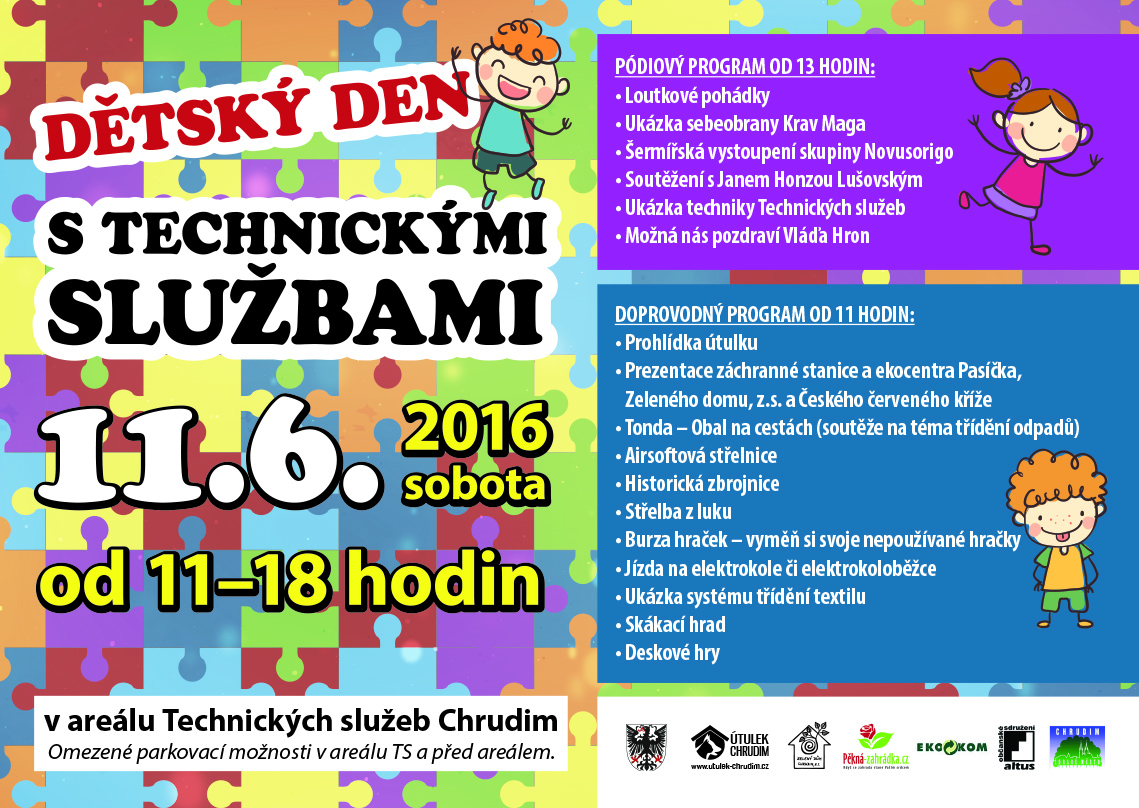 Prohlídka útulku pro psy a kočky, prezentace záchranné stanice a ekocentra Pasíčka, Tonda - Obal na cestě - soutěž ve třídění odpadu, velká burza hraček - reuse v praxi, elektrokola a elektrokoloběžka. Kam s ním - tentokrát na téma oblečení. Taška látková nebo plastová - prezentace Zeleného domu Chrudim, z.s., Deskové hry s přírodovědnou tématikou a spousta daších atrakcí (skákací hrad, lukostřelna, airsoft atd.). Vše zdarma !