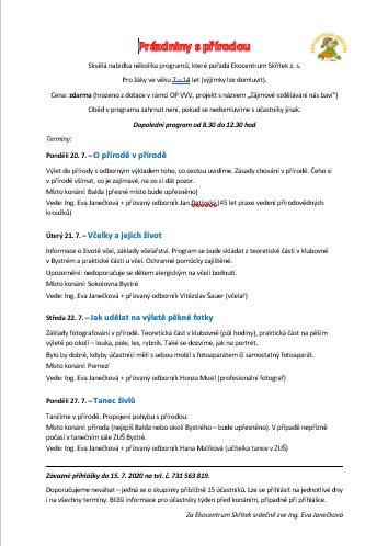 Aktuální informace o dění v oblasti ekologické/environmentální výchovy v Pardubickém kraji a nejen tam.
