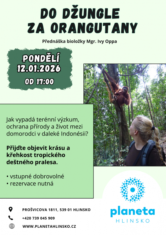 Přijďte v pondělí 12.01.2026 od 17 h na velice zajímavou přednášku bioložky Mgr. Ivy Oppa. Vstupné dobrovolné. Rezervace nutná.