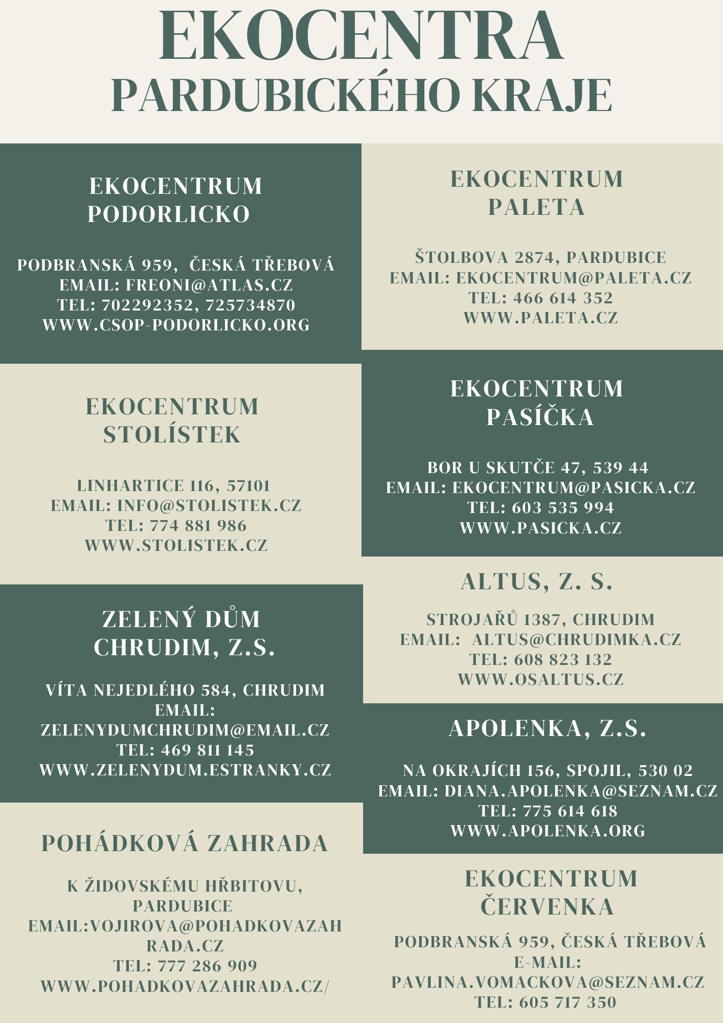 Střediska Ekologické výchovy Pardubického kraje Úvod Kontakty Střediska Ekologické výchovy Pardubického kraje 10. 9. 2024