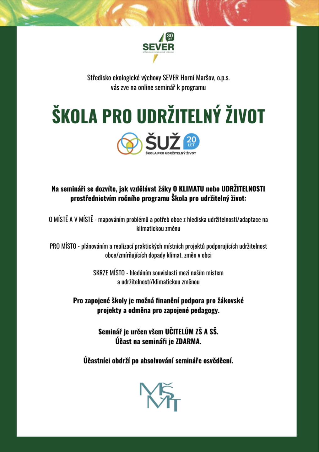 Zapojte se ve školním roce 2024/2025 do programu Škola pro udržitelný život: na úvodním on-line semináři se dozvíte, jak program funguje.