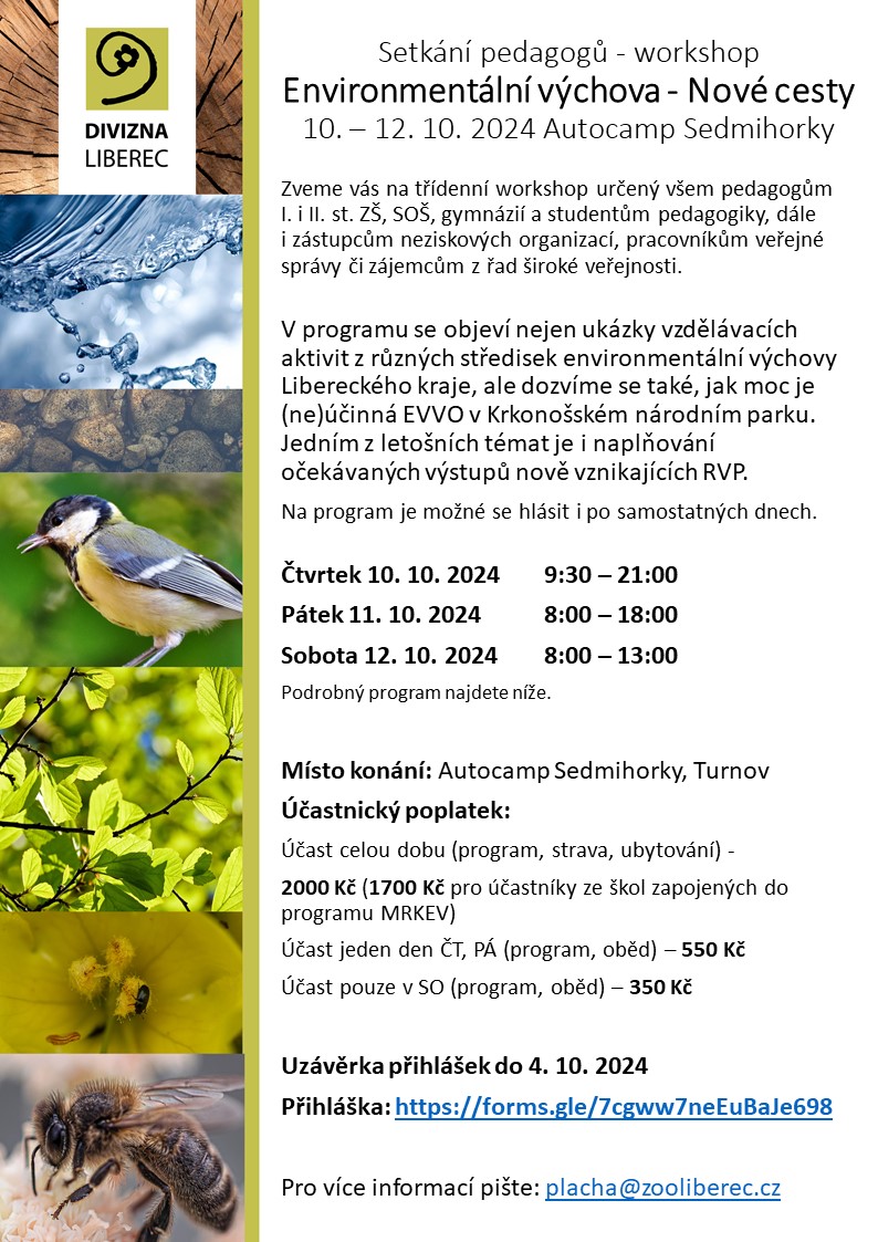 Akce s názvem Environmentální výchova - Nové cesty je ve znamení novinek v oblasti vzdělávání EVVO nejen ze strany ekologických středisek Libereckého kraje, ale i informací ohledně nově vznikajícího RVP pro školy.