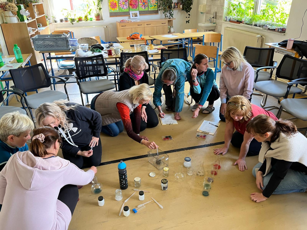 Pedagogové naší školy se pravidelně využívají příspěvku z rozpočtu Pardubického kraje na další vzdělávání celé sborovny v oblasti environmentální výchovy. V tomto roce nás zajímalo, jak na badatelskou výuku. Pod vedením školitelů Jáchyma a Jakuba se SEVER Horní Maršov jsme se dozvěděli něco z teorie badatelské výuky, získali novou inspiraci i praktické tipy, jak vést žáky k objevování, kladení otázek i samostatnému hledání odpovědí. Na závěr jsme si vyzkoušeli badatelskou výuku v praxi.